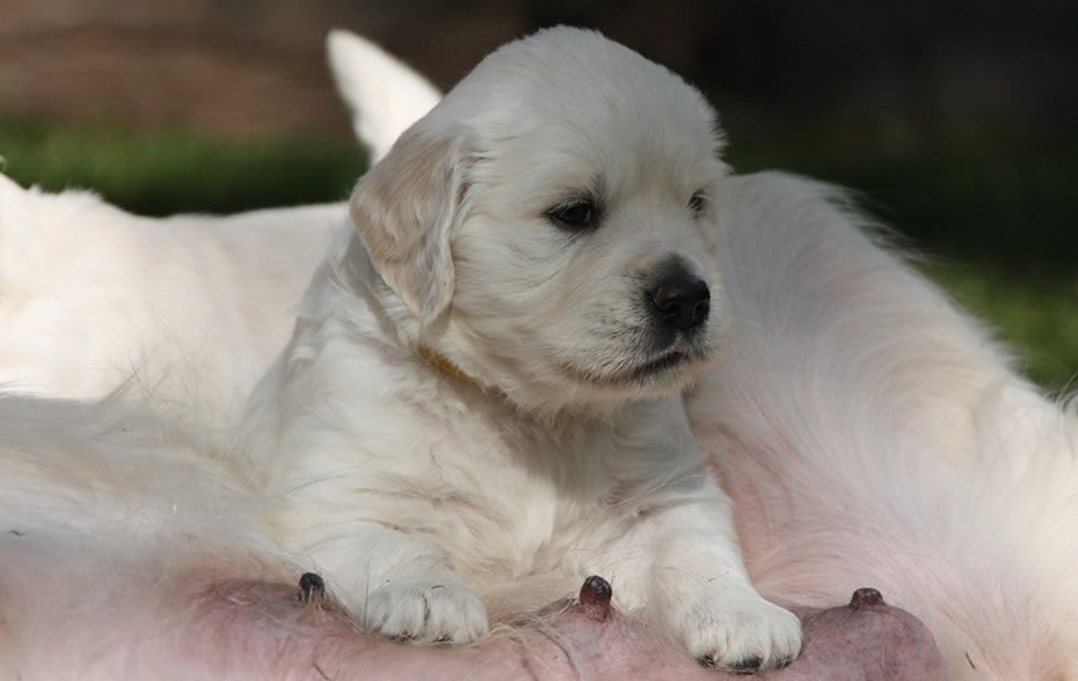 NO, we breed British style Golden Retrievers. They are not rare at all. They range in colour from a very light cream to a golden colour. Many are lighter than their American counterpart. Do not be misled by breeders selling "rare white" "rare platimum" or "English Creams" Golden Retrievers. They are simply the original Golden Retriever.