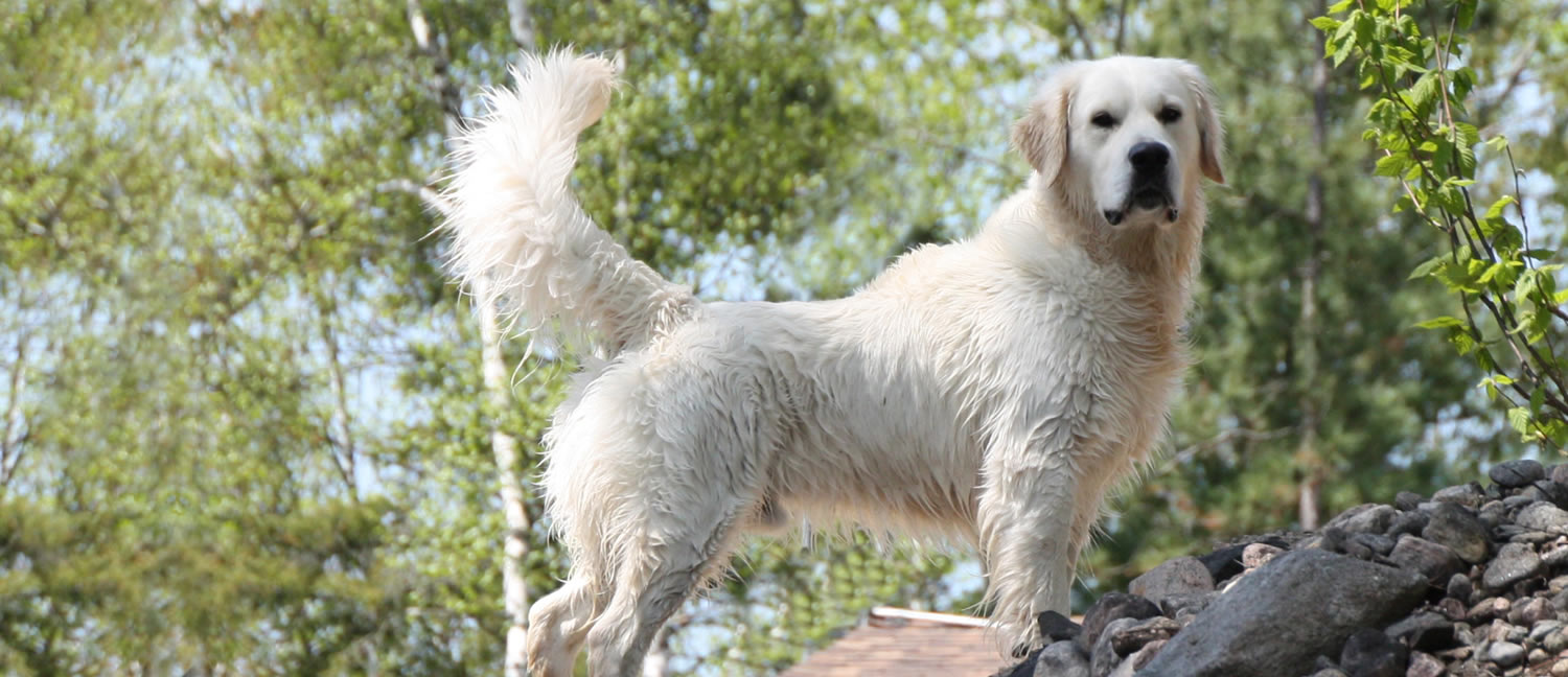 Hudson comes from very respected European bloodlines. His sire, Canadian and Swedish Champion Dream Max Jorgen Brink, a beautiful and gentle Golden. His Dam, Inassica’s Water Primula again from well respected Swedish bloodlines. She is gentle, affectionate and has a stunning appearance. Hudson is very "Regal". He's intelligent, confident, sweet and loves to receive all the attention. He has a wonderful cream coat, block head, good angulation and great movement. On June 26, 2010 at 14 months of age, Hudson completed his Canadian Championship!